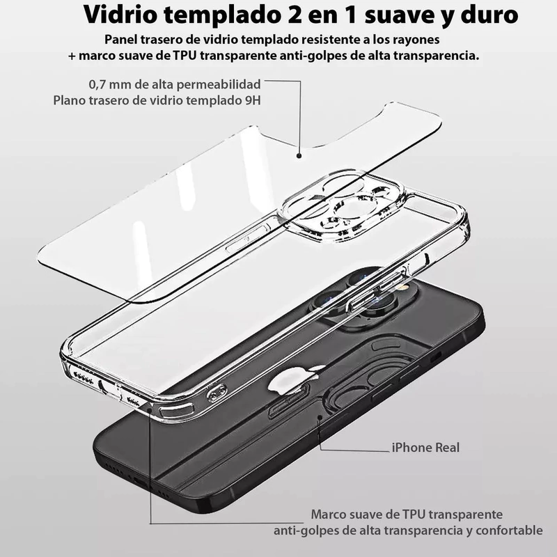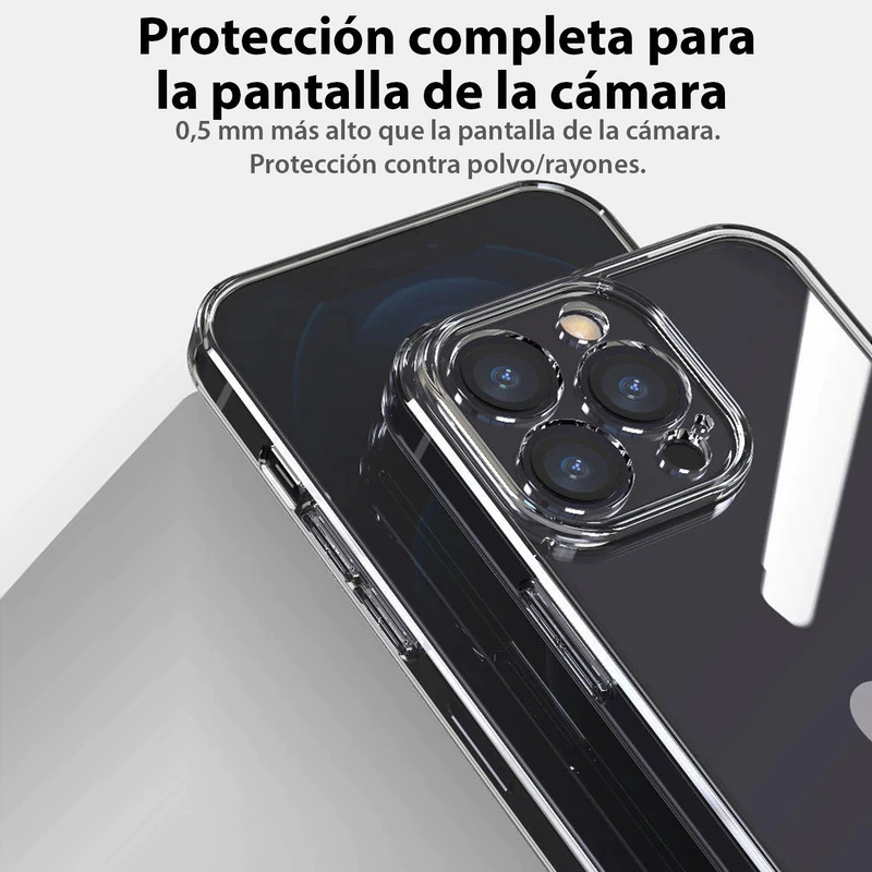 Con su diseño totalmente transparente, esta funda resalta la belleza original de tu iPhone mientras lo protege de golpes, caídas y marcas. Fabricada con materiales de alta calidad como TPU y policarbonato, ofrece una sensación agradable al tacto y una protección de alto impacto.