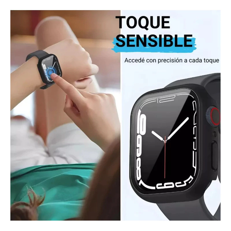 Protegé tu Apple Watch con la Funda 360 con Templado de CG, la opción perfecta para mantener tu smartwatch a salvo de cualquier daño. Esta funda, fabricada con materiales de policarbonato (PC) de alta calidad, es delgada y liviana, asegurando que no agregue volumen adicional a tu reloj. El vidrio templado duro 9H proporciona una claridad HD del 99,99%, permitiendo que disfrutes de la mejor calidad de imagen mientras mantenés tu pantalla protegida.