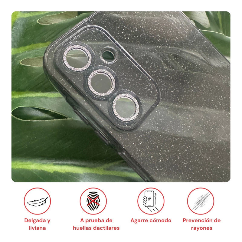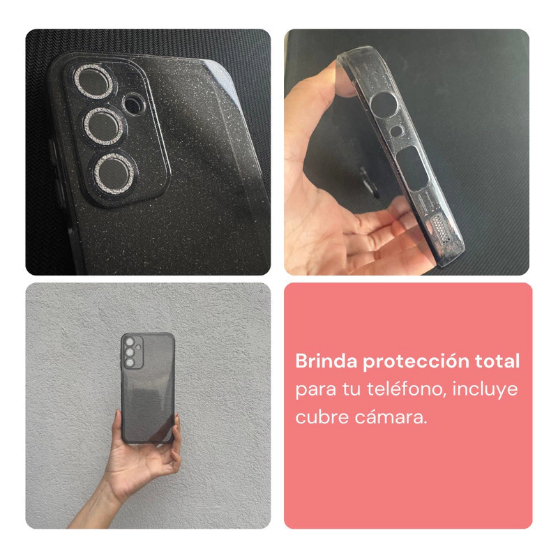 La funda glitter con cubre cámara de brillos para Samsung es el accesorio ideal para quienes buscan protección y estilo en un solo producto. Diseñada con materiales resistentes y de alta calidad, esta funda ofrece un acabado brillante con partículas de glitter que le dan un toque sofisticado y moderno. Su diseño exclusivo incluye un protector de cámara integrado, evitando rayones, golpes y el desgaste diario sin afectar la calidad de tus fotos. Además, su ajuste preciso permite un acceso cómodo a todos los botones y puertos, garantizando una experiencia de uso sin inconvenientes.