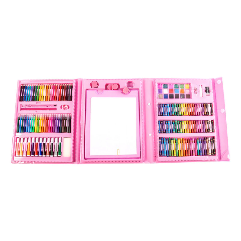 La estrella del set es su caballete de doble cara, perfecto para trabajar en diferentes proyectos simultáneamente o compartir la diversión con alguien más. Además, las hojas A4 incluidas permiten comenzar a crear de inmediato, mientras que los crayones, marcadores de punta gruesa y fina, y lápices de colores garantizan resultados impactantes. Los pasteles al óleo brindan una fuerte adherencia y colores brillantes, ideales para obras duraderas, mientras que las acuarelas ofrecen una mezcla suave y un secado rápido para dar vida a tus ideas con facilidad.