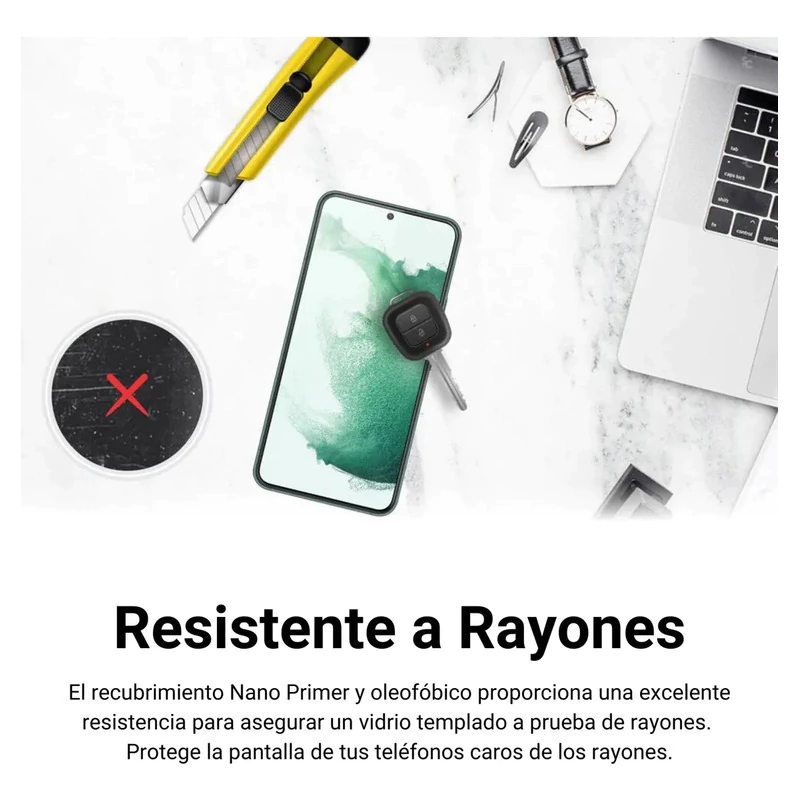 Alta Dureza 9H: Con la máxima dureza disponible, es altamente resistente a impactos y rayones causados por objetos como llaves, monedas y otros elementos del día a día.